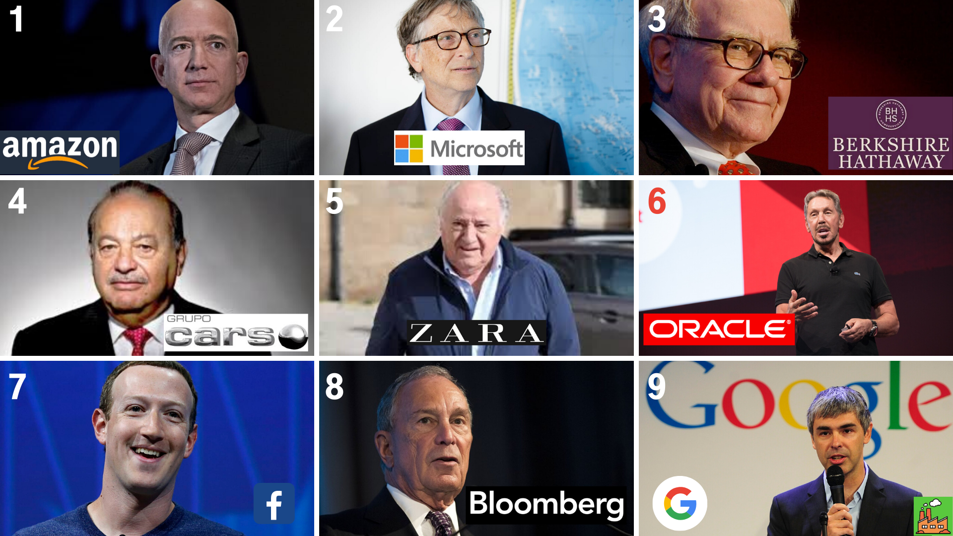 아만시오 오르테가 | 래리 엘리슨 | 마크 주커버그 |