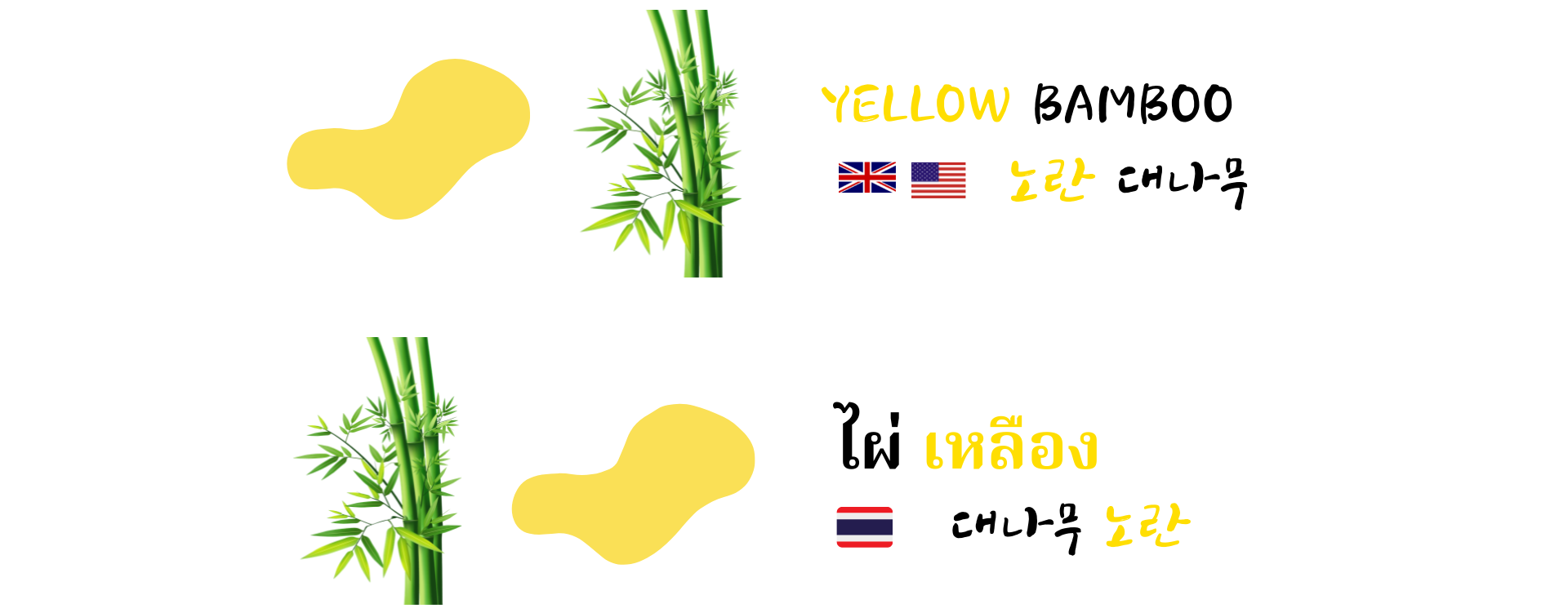 치앙마이에서 뗏목 래프팅을 했는데, 뗏목 소년이 ‘뱀부 옐로우!’를 외친 적이 있다. 노란 대나무를 가리키는 말로 이를 영어로 바꾸면 Yellow Bamboo다. Yellow가 Bamboo를 꾸며주는 구조지만 태국어는 대나무가 먼저 나오고 노란 이 뒤에 나온다. 영어를 제대로 배운 적이 없는 태국인들이 위와 같은 식으로 영단어를 나열하는 경우를 수도 없이 목격할 수 있다.