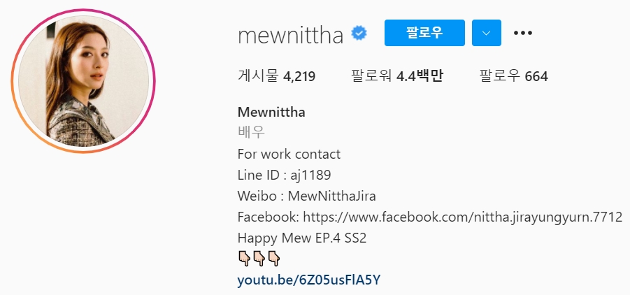 내가 꼽은 태국여자 연예인중에서 Top 3 배우 뮤 닛타(Mew Nittha Jirayungyurn)